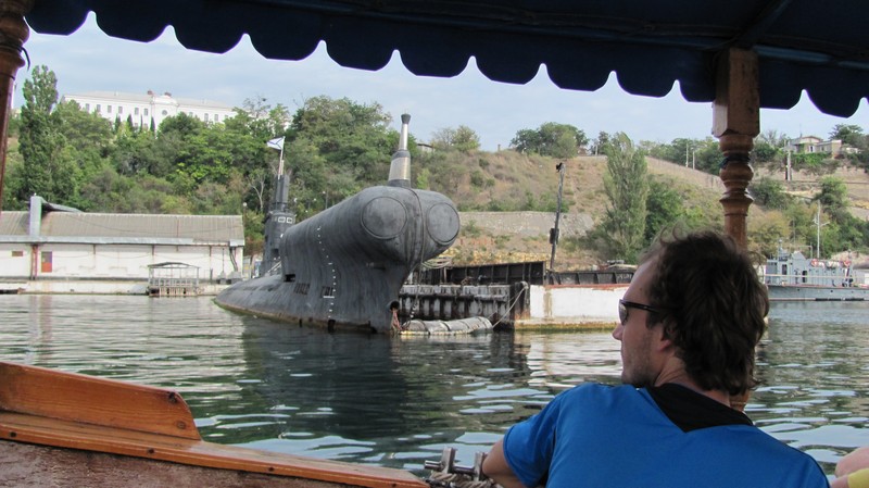 Приехал незапланированный катерок и забрал нас прямо со стоянки в Балаклаву, избавив таким образом от пешей прогулки с рюкзаками, которая отняла бы 2 часа. Добравшись в Севастополь мы это время чудесненько провели, вкусненько покушав в столовой №1 и попали на экскурсию по бухтам Севастополя, где познакомились с нашим и российским флотом, узнали историю Севастополя и увидели живые подводные лодки.