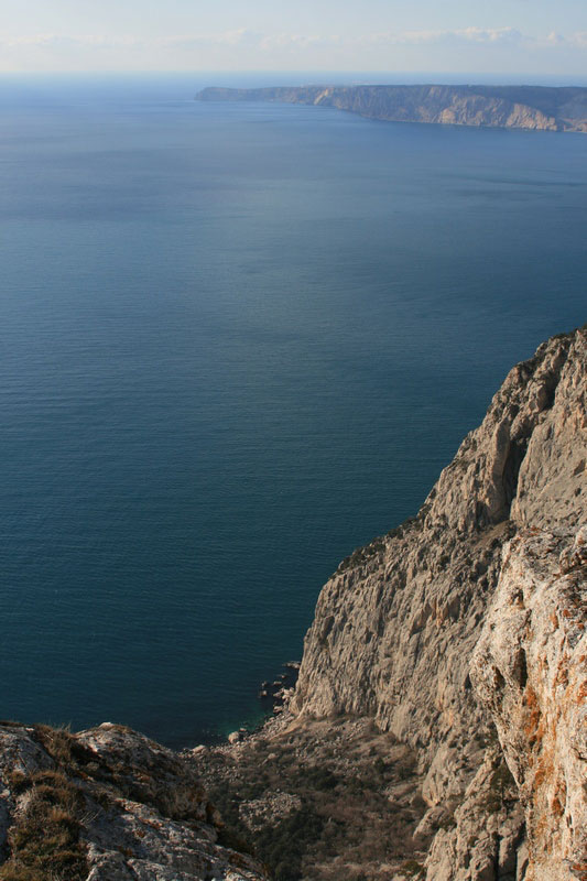 Часа в два дня мы вышли к урочищу Кокия. Там пообедали и спрятав рюкзаки в лесу, на легке сходили на мыс, посмотрели развалины базы, полюбовались безбашенным видом на море, Балаклаву, Затерянный мир, пофоткались и пошли дальше, чтобы успеть дойти до Куш-Каи к закату.