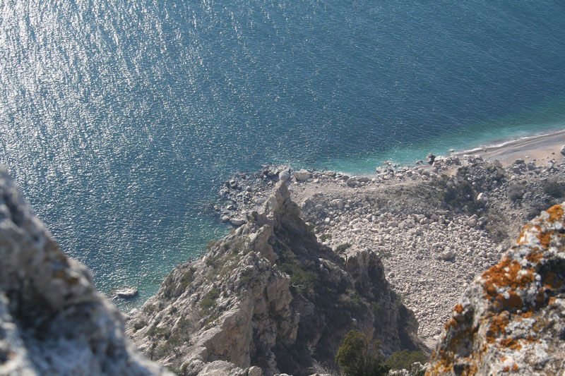 Погуляв немного по набережной и посмотрев одну из достопримечательностей Балаклавы — «Городской пляж», мы двинули на мыс А-Йя.![]()