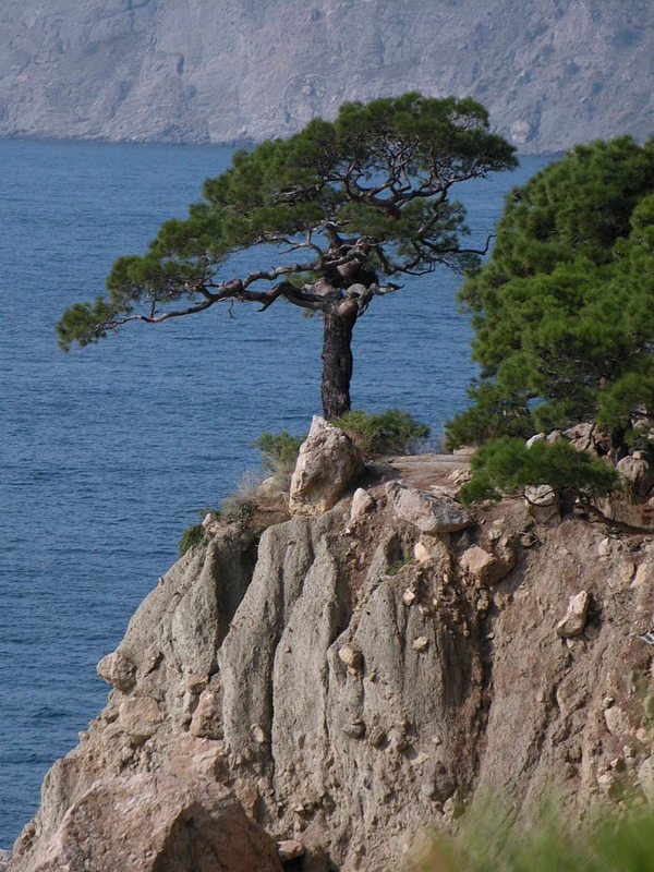 Тропа проходит между скал над крутыми обрывами. Внизу море, а вокруг завораживающие красоты. Наша промежуточная цель — заброшеная военная база "Сотка" на горе Кокия-Айя, под которой находится Затеряный мир. Конечно это не тот, о котором писал Конан Дойль, но реально, попасть туда можно только с воды или со специальным альпинистским снаряжением.