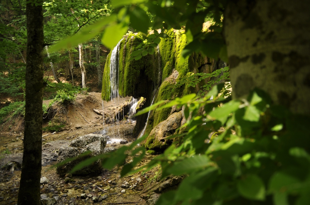 По дороге к одной из главных достопримечательностей Крыма — Большому каньону, мы попадем сначала на Юсуповское озеро. Оно питает целое водное шоу из перекатов и маленьких водопадов, которое венчает водопад Серебряные струи.